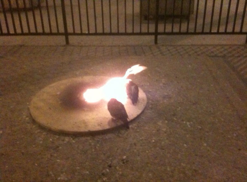 …who wonders if the pigeons that stand a bit too close to Chicago’s Eternal Flame when warming themselves ever stand there too long and become roasted chicken for the homeless?