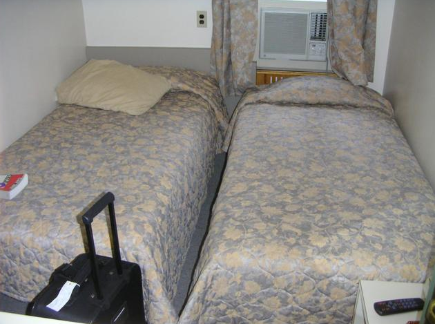 Have you ever stayed in the Japanese-style arrangement where the “room” is a bed with a pull-down door and people dress in the halls and use communal bathrooms? I’ve only seen pictures, but thought nothing could make me more claustrophobic — until I saw this picture. At least you would be prepared if you booked a bunk bed-as-room place and the lights are very bright. This place looks like a jail cell, and you’d probably never find anything which dropped between the beds.