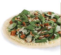 So we did. We got the BLT: hickory-smoked bacon, fresh spinach, aged Parmigiano-Reggiano and a bit of fresh garlic over tomato sauce. Brought it home, slid it in the oven and 15 minutes later, it was like we were at Pizzeria Paradiso!