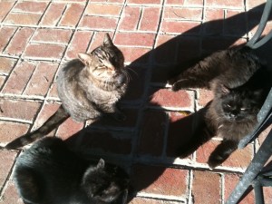 Being a cat lover, I promptly named all the cats and kept trying to trick them into letting me pet them. Alan is NOT a cat lover, so he kept rolling his eyes and arguing with the names I gave them. “Popeye?” he would ask, scrutinizing the black cat with only one functional eye, upon whom I bestowed that moniker. “Why Popeye? Why not Scrappy?”