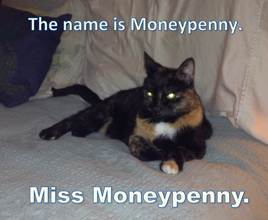 Alan actually first suggested (to one of my co-workers, nonetheless) that we were naming her Pussy Galore. I’m sure I don’t have to explain why Miss Moneypenny seems a tad more fitting, but in case you’re slow on the up-take: because I’ve always wanted a secretary.