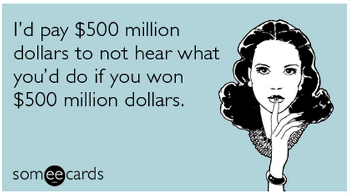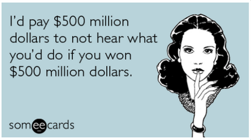 Last week’s record-setting MegaMillions jackpot dominated my Facebook feed for a few days. Photos of lotto tickets (cleverly posted by radio stations offering share the winnings with anyone who “liked” their photo) circulated wildly. Friends were speculating what they would do with their newly-won wealth.