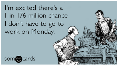 I speculated that the MegaMillions could be used as a fairly accurate diagnostic for a workplace morale, though when I started to create the scale of interpretation, I realized it sounded more like a Lotto Horoscope: