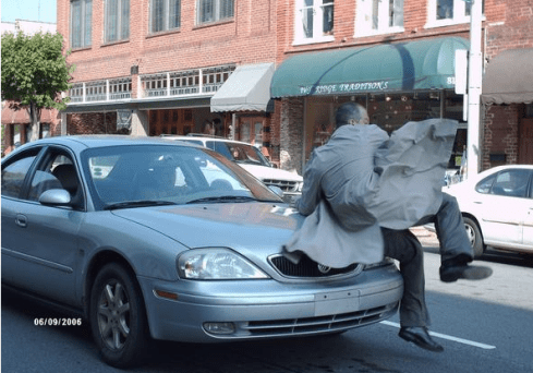 You know what else doesn’t happen everyday? Spotting the person who hit you with her vehicle. That’s right.