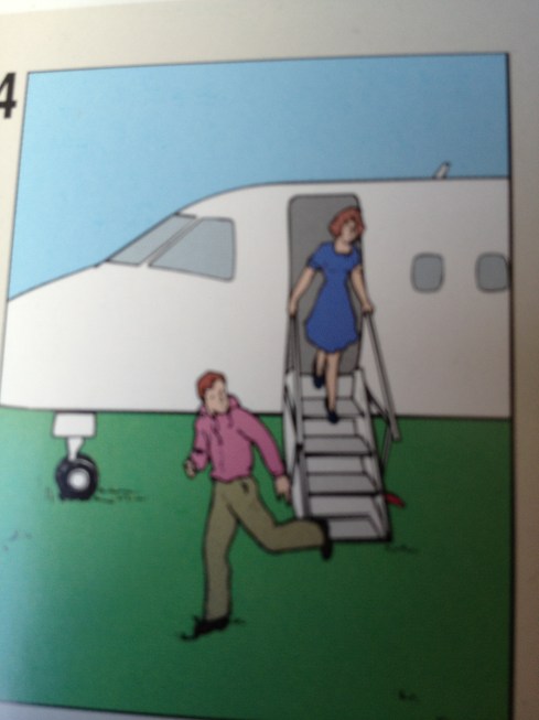Dear Illustrator: I hope you didn’t model this one on your own child. If so? I think you might want to have him tested for some odd aging disease because he simply looks like a little adult. And oddly flat. Perhaps you used Flat Stanley as a model? Or maybe the airline wanted you to show that oxygen masks are available to inflate passengers? I bet that’s it! Sorry to insult you.