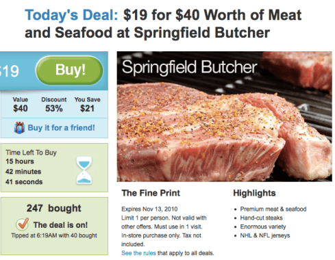 If you’re not familiar with them, the premise is this: you spend a certain amount of money to get a specific deal (generally twice the value of what you’ve spent). You’re essentially pre-paying to get yourself a 50% discount. The catch is that you have to use your deal before it expires (generally 6-12 months) or the vendor gets your money and you get nothing.